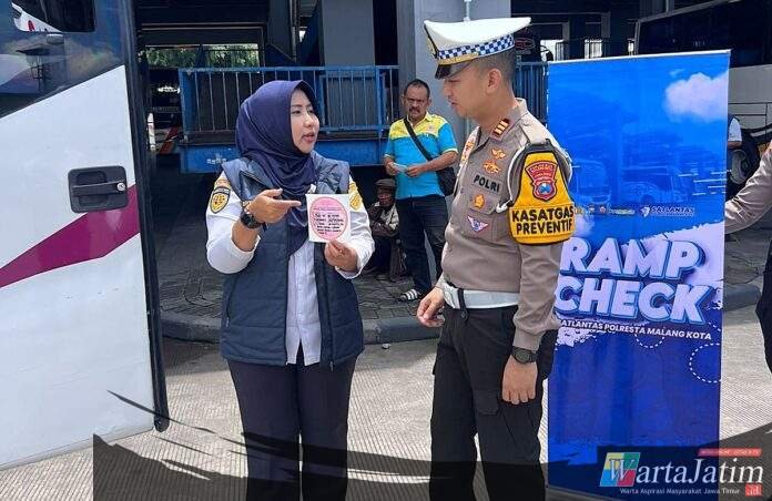 Satlantas Polresta Malang Kota, bersama Petugas Kemenhub Darat, dan Dishub Kota Malang melaksanakan ramp check armada bus di Terminal Tipe A Arjosari hingga garasi Perusahaan Otobus (PO) yang ada di Kota Malang dan angkutan dalam kota (Angkot).