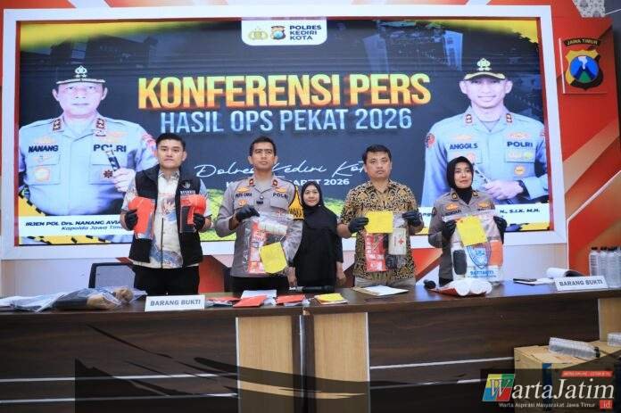 Kediri Kota – Wartajatim.id || Sejumlah kasus kriminal berhasil diungkap Polres Kediri Kota dalam Operasi Penyakit Masyarakat (Pekat) Semeru 2026. Dari hasil operasi ini, petugas kepolisian mengungkap sebanyak 25 kasus dan mengamankan barang bukti mulai dari narkoba hingga peredaran minuman keras (miras) ilegal.