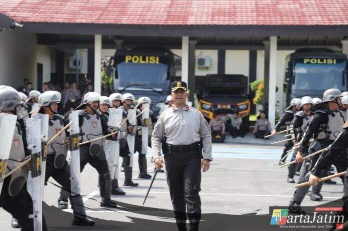 KEDIRI – Wartajatim.id || Kapolres Kediri AKBP Bramastyo Priaji, S.H., S.I.K., M.Si., memimpin langsung pelatihan pengendalian massa (Dalmas) untuk PJU (Pejabat Utama) dan Kapolsek jajaran di lapangan apel Mapolres, Kamis 11 /12/2025. Kegiatan ini bertujuan meningkatkan kemampuan dan kesiapan personel dalam menghadapi situasi genting seperti unjuk rasa atau kerusuhan.
