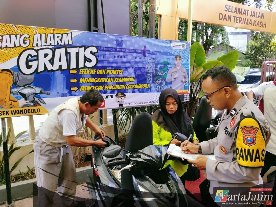 Kali ini, Polsek Wonocolo yang juga merupakan jajaran Polrestabes Surabaya menghadirkan layanan pemasangan alarm kendaraan bermotor secara gratis bagi masyarakat.