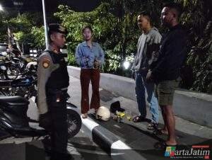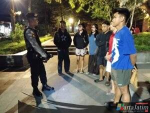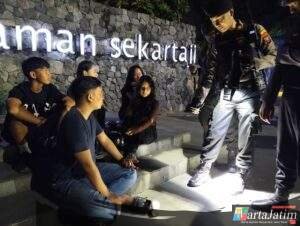 Saat mendatangi Taman Sekartaji dan bantaran sungai Brantas petugas menjumpai para remaja yang masih berstatus pelajar dan mahasiswa,setelah di lakukan pemeriksaan banyak yang ber – KTP Luar Kota Kediri, Kasat Samapta memberikan edukasi himbauan Kamtibmas untuk bersama-sama menjaga keamanan dan ketertiban.