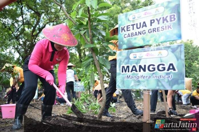 GRESIK – Wartajatim.id || Polres Gresik Polda Jatim bersama Yayasan Kemala Bhayangkari (YKB) Cabang Gresik menggelar aksi penanaman puluhan pohon produktif di kawasan Asrama Polisi Randuagung, Kecamatan Kebomas.