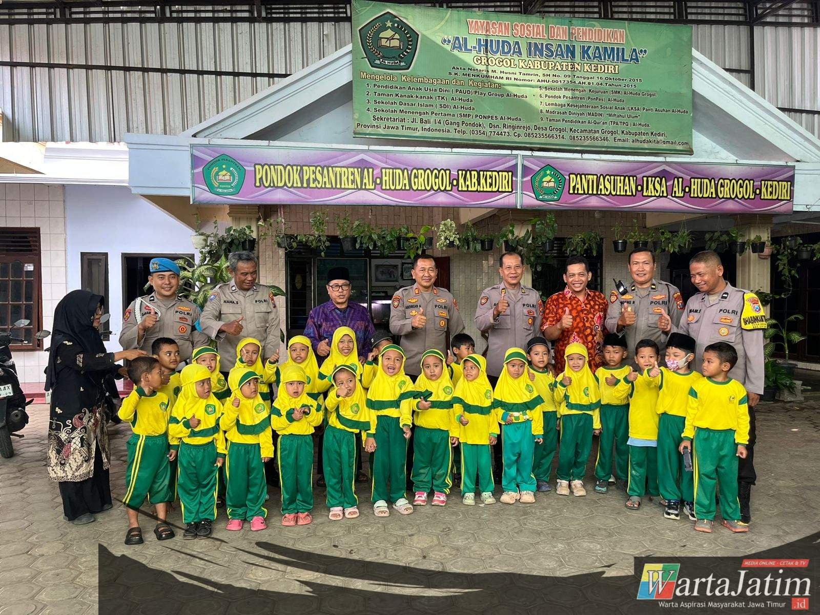 Kediri – Wartajatim.id || Momentum bulan suci Ramadhan dimanfaatkan jajaran Polsek Grogol Polres Kediri Kota untuk berbagi kepedulian kepada masyarakat. Kapolsek Grogol AKP Andang Wastiyono, S.H., M.H., bersama jajaran melaksanakan kegiatan bakti sosial dengan menyambangi Yayasan Sosial Pendidikan Al-Huda Insan Kamil Yatim Piatu yang berada di Desa Grogol, Kecamatan Grogol, Kabupaten Kediri, Jumat (6/3/2026).