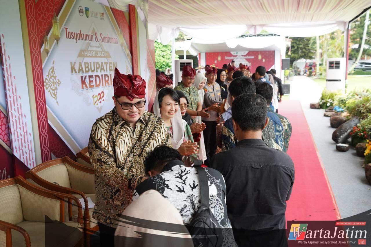 Kediri – Wartajatim.id || Pemerintah Kabupaten (Pemkab) Kediri menggelar acara Santunan dan Tasyakuran Hari Jadi Kabupaten Kediri ke-1222 ,tahun ini mengambil tema “Kediri Berbudaya, Kediri Berdaya”. Acara yang terbuka bagi publik ini diselenggarakan di halaman belakang Pemkab Kabupaten Kediri,Pada Sabtu (4/4/2026).