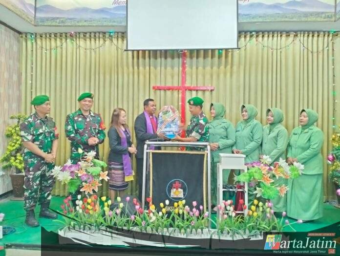 Kediri – Wartajatim.id || Koramil 02/Pesantren Kodim 0809/Kediri bersama Persit Kartika Candra Kirana Ranting 03 pada perayaan Natal 2025 dan Tahun Baru 2026, melaksanakan Kunjungan Natal ke 10 Gereja dan Rumah Ibadah yang berada di Wilayah Koramil 02/Pesantren Kodim 0809/Kediri dengan memberikan Himbauan Kamtibmas Memberikan Ucapan Selamat Natal 2025 dan Tahun Baru 2026 serta Menyerahkan Bingkisan Parcel Natal. Kegiatan dilaksanakan mulai tanggal 21 s.d 28 Desember 2025 mengikuti jadwal kegiatan ibadah yang ditentukan panitia gereja.
