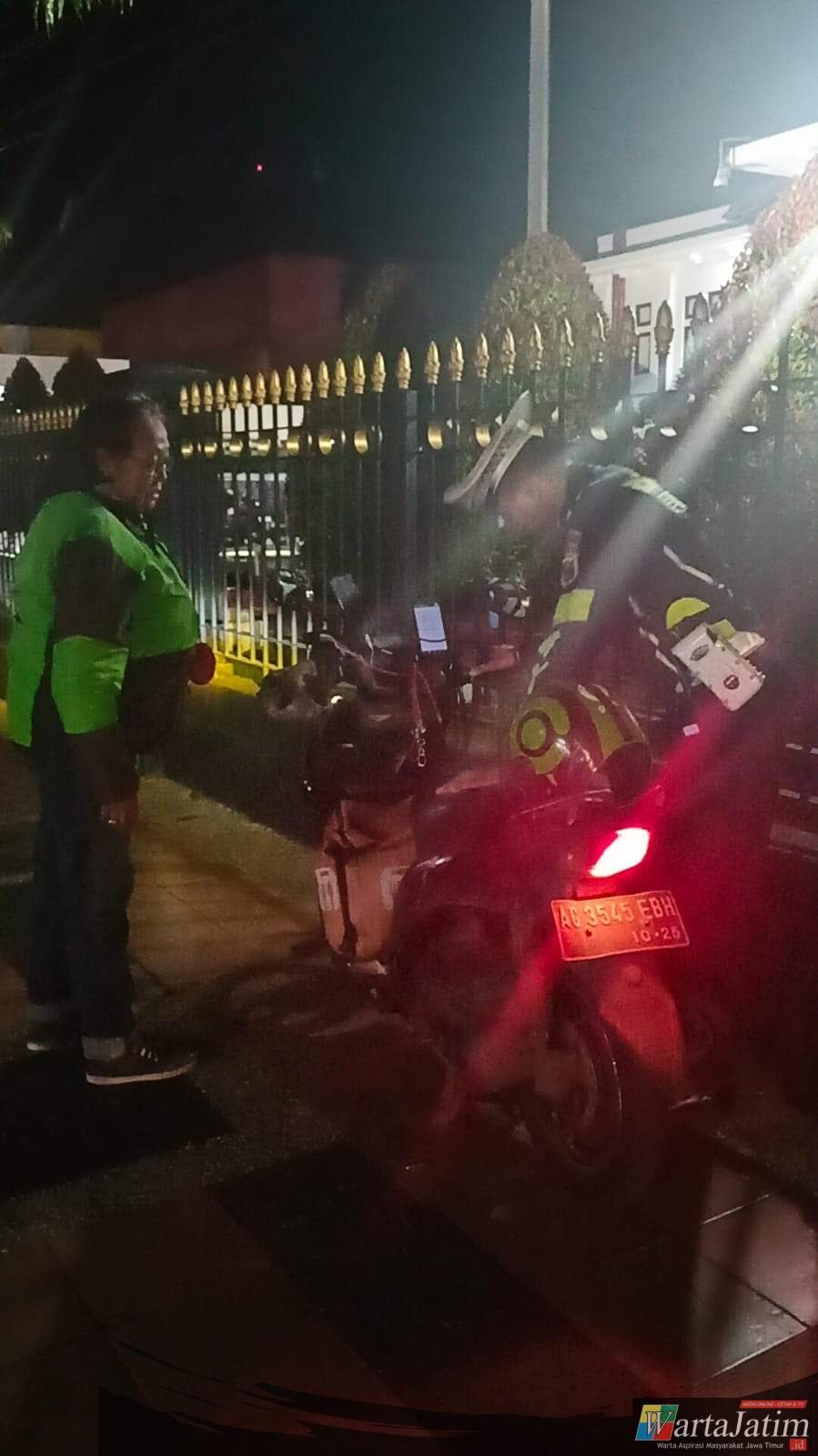 Personel Satlantas Polres Kediri kota,Sigap Bantu Ibu Gojek Yang Motornya  Mogok Malam Hari