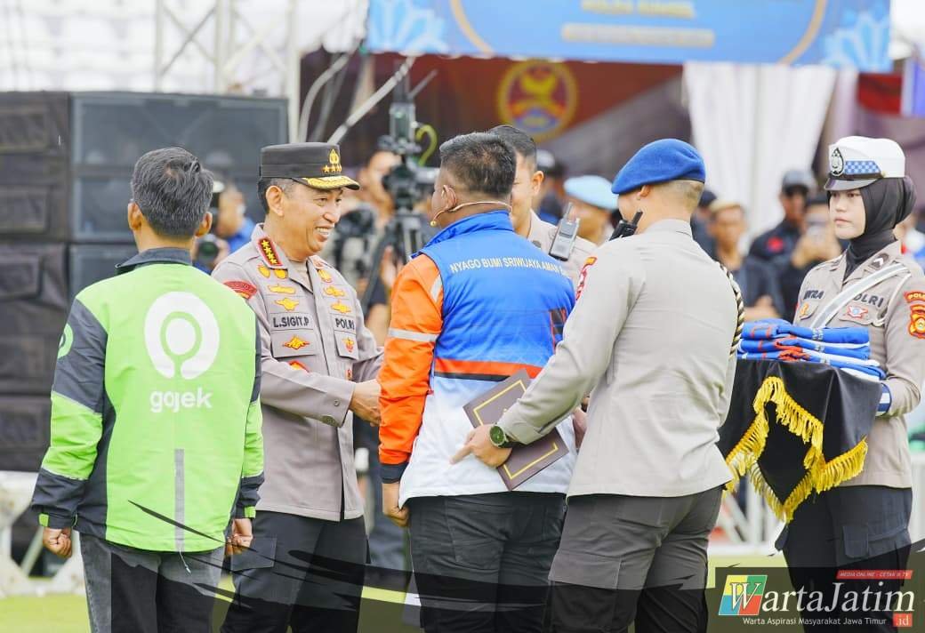 Sumsel – Wartajatim.id || Kapolri Jenderal Listyo Sigit Prabowo memimpin apel ojek online (ojol) dan buruh kamtibmas ‘Nyago Bumi Sriwijaya Aman Bae’ di Stadion Bumi Sriwijaya, Kota Palembang, Sumatera Selatan (Sumsel). Dalam kegiatan ini, Ia menekankan bahwa, untuk terus menjaga nilai persatuan-kesatuan hingga stabilitas nasional.