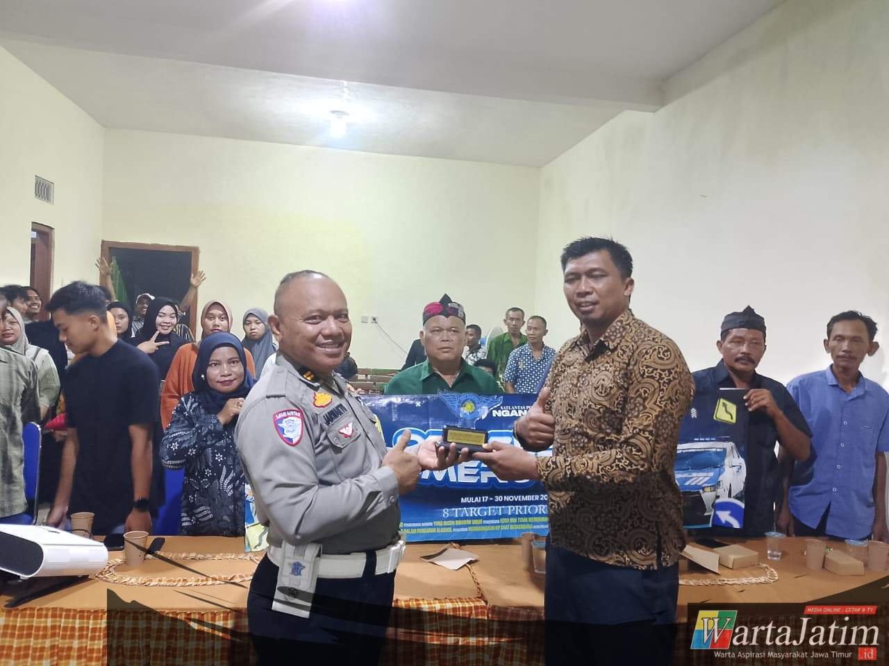 Nganjuk – Wartajatim.id || Satlantas Polres Nganjuk kembali menggelar program “Polantas Menyapa” sebagai wujud hadirnya Polisi Lalu Lintas di tengah masyarakat. Kali ini, sosialisasi tertib berlalu lintas dan Operasi Zebra Semeru 2025 menyasar warga Desa Balongasem, Kecamatan Lengkong, Rabu (19/11/2025) malam di Balai Desa setempat.