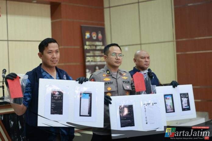 SURABAYA – Wartajatim.id || Polda Jawa Timur (Jatim) melalui Direktorat Reserse Siber (Ditressiber) berhasil mengungkap kasus tindak pidana Informasi dan Transaksi Elektronik (ITE) yang memuat konten asusila berupa pornografi anak.
