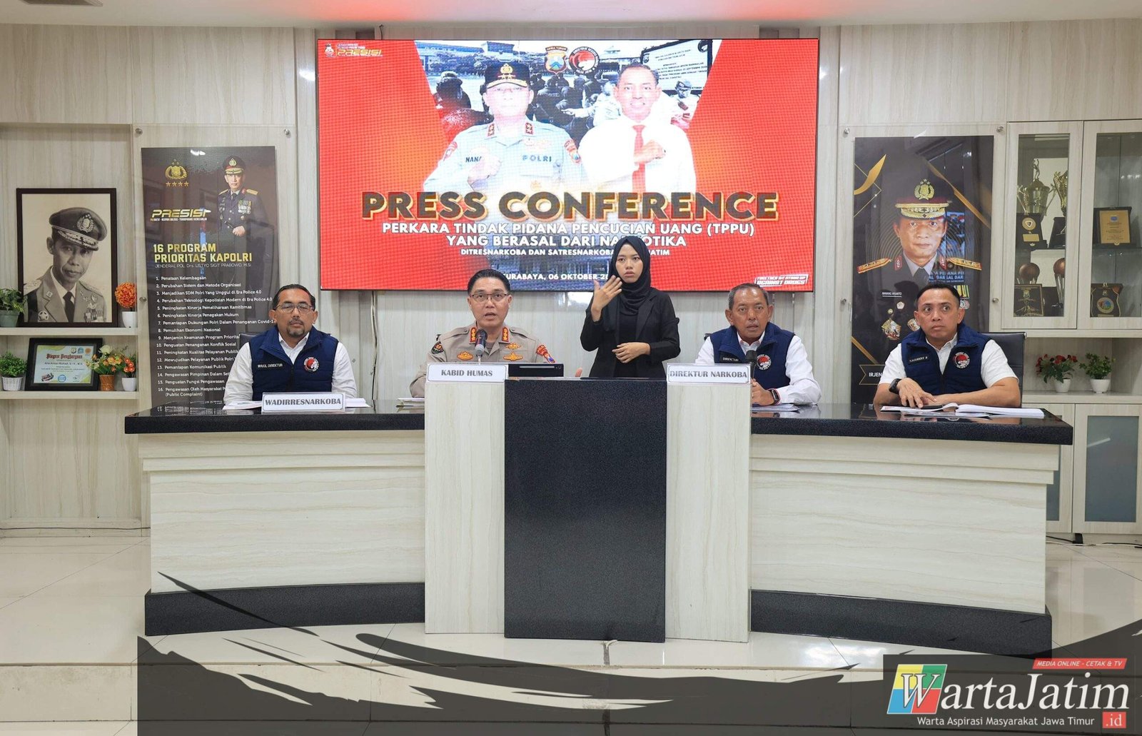 Kabid Humas Polda Jatim Kombes Pol Jules Abraham Abast menjelaskan bahwa capaian ini merupakan wujud transparansi dan akuntabilitas publik atas kinerja Ditresnarkoba Polda Jatim dalam menegakkan hukum terhadap tindak pidana narkotika dan tindak pidana pencucian uang (TPPU) yang terkait jaringan narkoba.