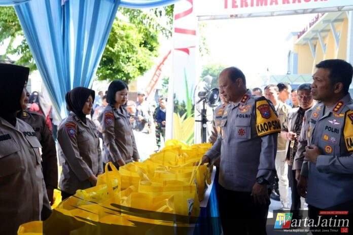SIDOARJO – Wartajatim.id || Kepolisian Daerah Jawa Timur bersama jajaran menggelar Gerakan Pangan Murah Polri secara serentak di berbagai wilayah di Jawa Timur menjelang Hari Raya Idulfitri yang dipusatkan di Stadion Gelora Delta Sidoarjo, Jumat (13/3/26).