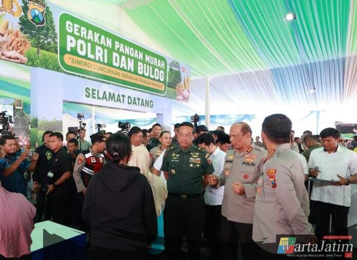 SIDOARJO – Wartajatim.id || Kepolisian Daerah Jawa Timur (Polda Jatim) bersama jajaran Polres/ta/tabes menggelar Kick Off Launching Gerakan Pangan Murah (GPM) Polri di Sidoarjo, Kamis (14/8/2025).