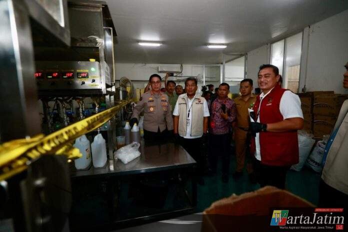 Direktur Reserse Kriminal Khusus (Dirreskrimsus) Polda Jatim Kombes Pol Roy H.M. Sihombing menjelaskan, pengungkapan dilakukan di pergudangan kawasan Bohar, Kecamatan Taman, Kabupaten Sidoarjo, Minggu (19/4/2026) malam.