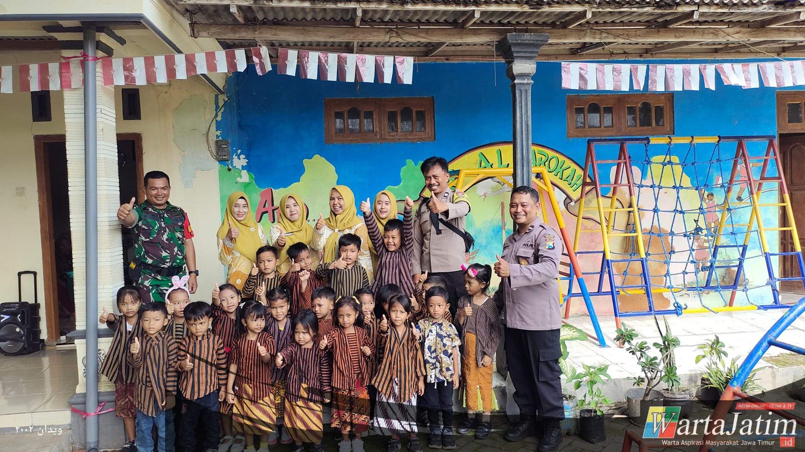 Nganjuk – Wartajatim.id || Panit Binmas Polsek Warujayeng Aipda Widian bersama Bhabinkamtibmas Desa Demangan Aiptu Kholik Wicaksono mendampingi kegiatan Senam Anak Indonesia Hebat (AIH) di TK Pertiwi 2 Demangan, Kecamatan Tanjunganom. Kegiatan berlangsung penuh keceriaan sebagai bentuk dukungan Polri terhadap tumbuh kembang anak usia dini, Kamis pagi (11/12/2025).