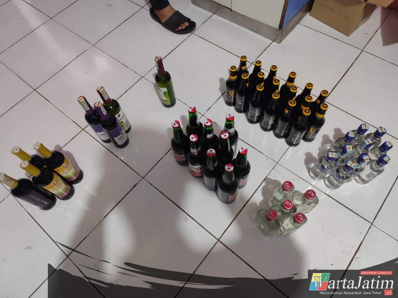 Hasilnya, puluhan botol minuman keras berbagai merek berhasil diamankan.