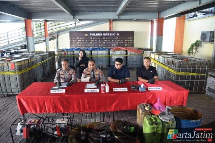 GRESIK – Wartajatim.id || Polres Gresik Polda Jatim berhasil mengungkap kasus penyalahgunaan bahan bakar minyak (BBM) jenis solar subsidi dengan total barang bukti mencapai sekitar 17.000 liter.