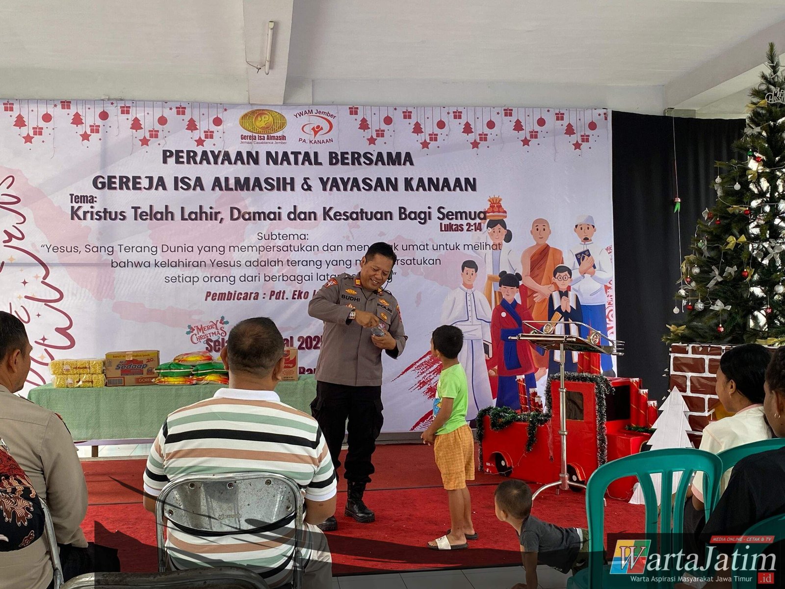 JEMBER – Wartajatim.id || Dalam rangka menyambut perayaan Natal, Polres Jember Polda Jatim menggelar kegiatan sosial dengan berbagi kasih ke Panti Asuhan Kanaan di Kelurahan Gebang, Kecamatan Patrang, Kabupaten Jember,Jum’at, (19/12/2025)