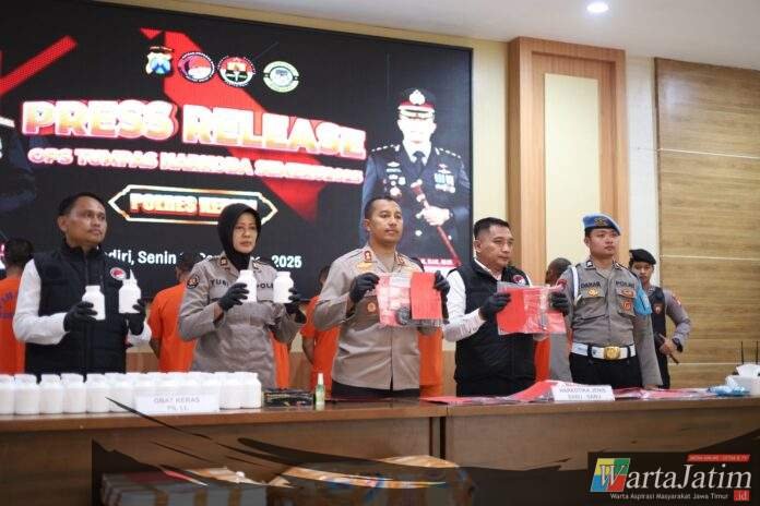 KEDIRI – Wartajatim.id || Polres Kediri Polda Jawa Timur (Jatim) berhasil mengungkap 14 kasus peredaran narkotika dan obat keras berbahaya (okerbaya) dalam Operasi Tumpas Narkoba Semeru 2025.
