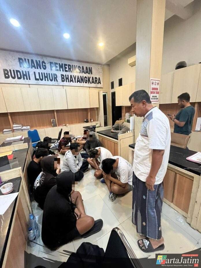 Hasil penyelidikan kemudian dikembangkan oleh tim gabungan Unit Resmob Satreskrim Polres Kediri bersama Unit Reskrim Polsek Kandat dan Polsek Ngancar. Dari pengembangan tersebut, 13 orang terduga pelaku diamankan di sejumlah lokasi berbeda pada Senin (6/4/2026) malam.