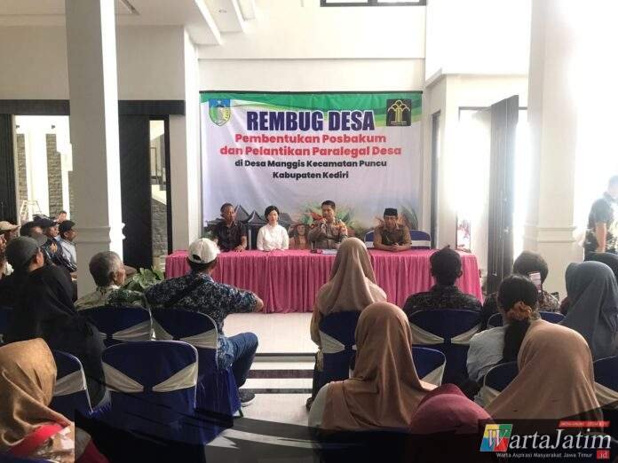 KEDIRI – Wartajatim.id || Sebagai bentuk dukungan terhadap peningkatan kesadaran hukum Kapolres Kediri AKBP Bramastyo Priaji, S.H., S.I.K., M.Si. melalui Kepala Seksi Hukum AKP Totok Triyono, S.H. menghadiri kegiatan rembug warga Desa Manggis, Kecamatan Puncu, Kabupaten Kediri, Rabu (15/10/2025).