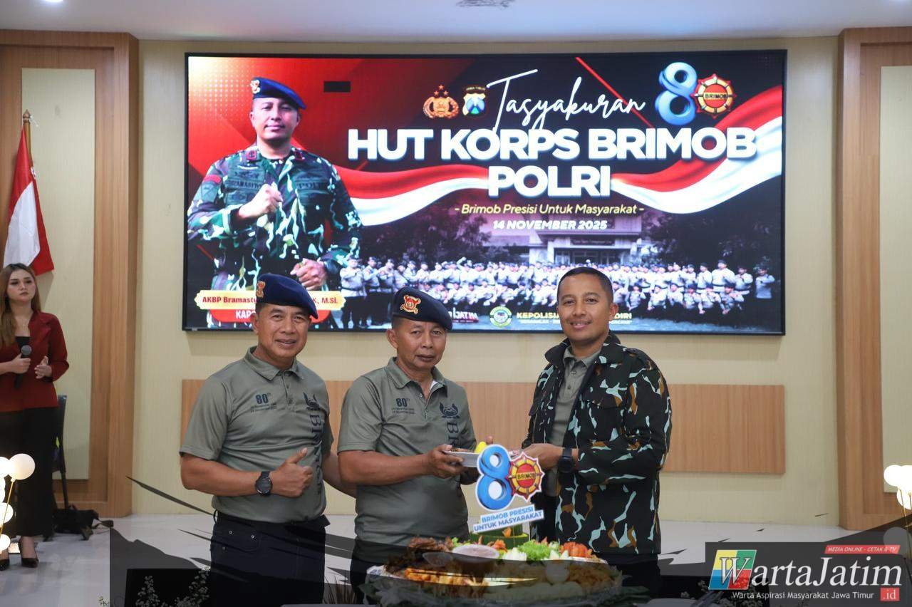 KEDIRI – Wartajstim.id || Polres Kediri Polda Jawa Timur menggelar tasyakuran HUT ke-80 Korps Brimob Polri tahun 2025, Jumat (14/11/2025).