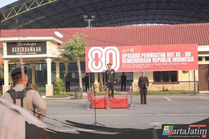 KEDIRI – Wartajatim.id || Suasana khidmat mewarnai pelaksanaan Upacara Pengibaran Bendera Merah Putih dalam rangka memperingati HUT ke-80 Kemerdekaan Republik Indonesia di lapangan apel Mapolres Kediri.