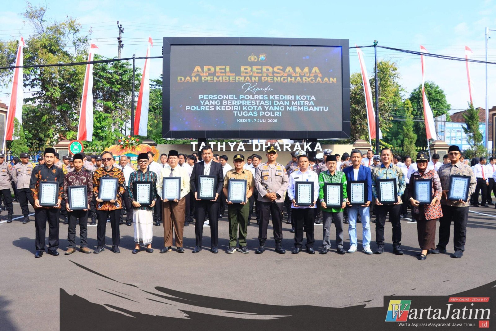 Kediri Kota — Wartajatim.id || Polres Kediri Kota menggelar apel bersama di Lapangan Apel Polres Kediri Kota, Senin (7/7/2025), sebagai bentuk penghargaan terhadap personel yang dinilai berprestasi dan mitra Polri yang berkontribusi besar dalam mendukung tugas-tugas kepolisian.