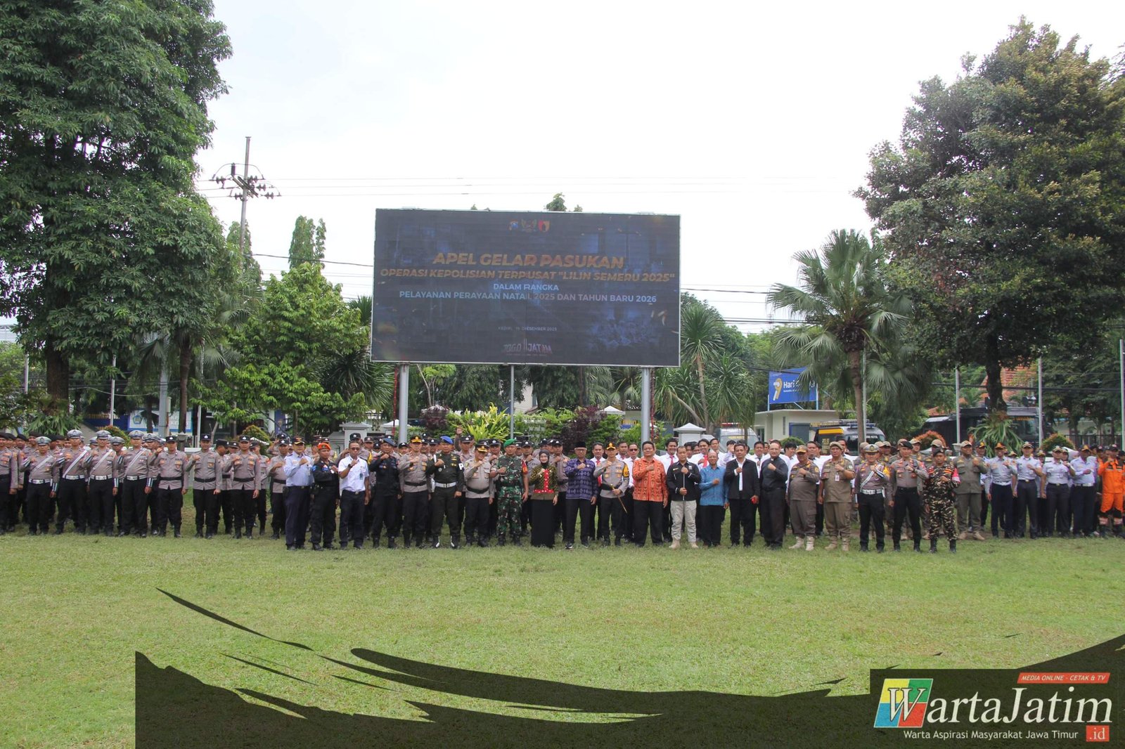 Kediri Kota – Wartajatim.id || Polres Kediri Kota menggelar Apel Gelar Pasukan Operasi Kepolisian Terpusat Lilin Semeru 2025 di Lapangan Halaman Depan Kantor Pemerintah Kota Kediri. Apel tersebut dipimpin langsung oleh Wali Kota Kediri Vinanda Prameswati, S.H., M.Kn, Jum’at (19/12).