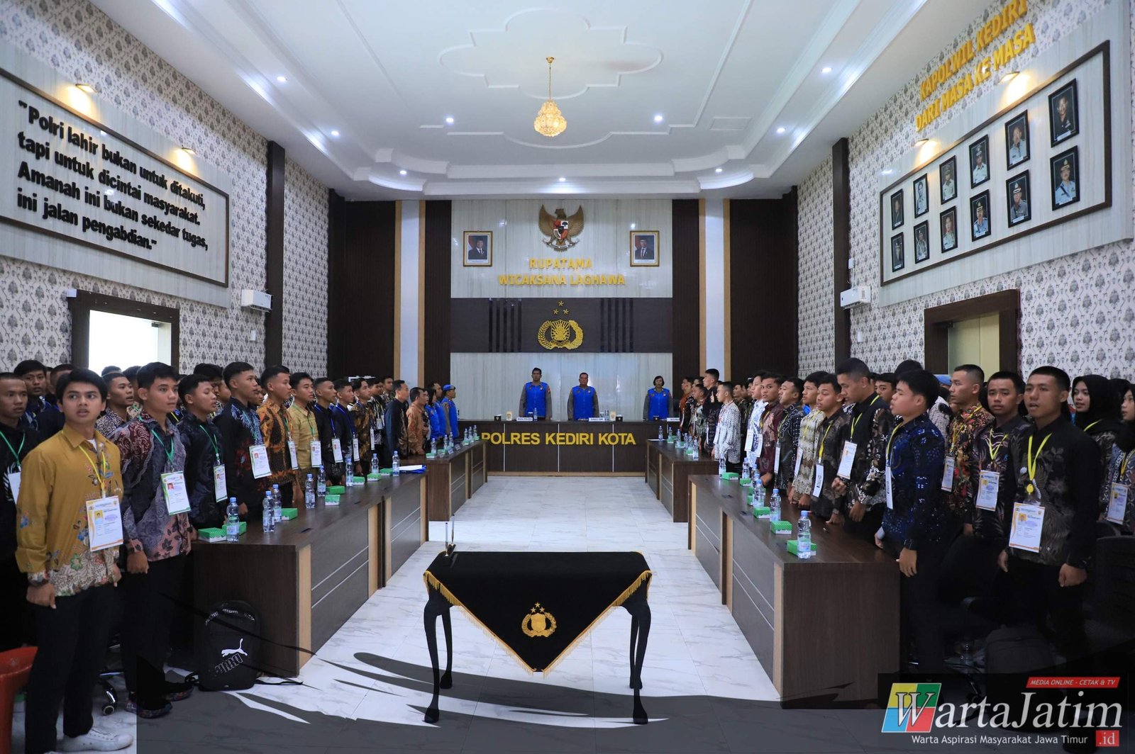 Kegiatan yang digelar di Ruang Rupatama Polres Kediri Kota mulai pukul 09.00 WIB hingga 10.50 WIB tersebut dihadiri Wakapolres Kediri Kota Kompol Putu Gde Caka Pratyaksa Ratsuko, S.I.K., M.I.K., didampingi pejabat utama, panitia seleksi, serta 143 peserta bersama perwakilan orang tua.