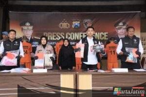 Kediri Kota – Wartajatim.id || Satuan Reserse Kriminal (Satreskrim) Polres Kediri Kota berhasil mengungkap kasus tindak pidana pencabulan atau persetubuhan anak bawah umur dan pencurian. Pengungkapan kasus tersebut disampaikan langsung oleh Kasat Reskrim Polres Kediri Kota AKP Cipto Dwi Leksana, S.Tr.K., S.I.K., M.H., saat konferensi pers di Mako Polres Kediri Kota, Senin (8/12).