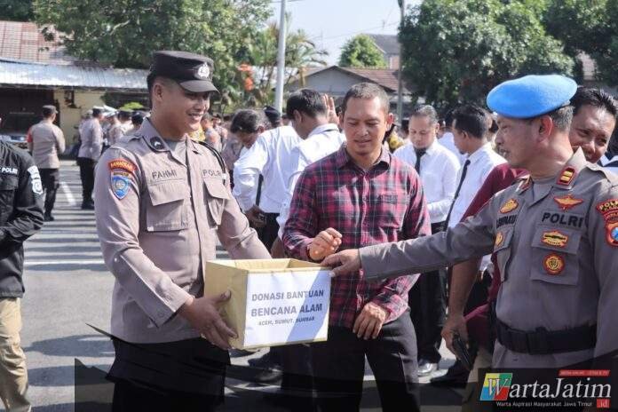 KEDIRI – Wartajatim.id || Usai pelaksanaan apel jam pimpinan, jajaran Polres Kediri Polda Jawa Timur kompak mengulurkan tangan untuk membantu korban bencana alam yang melanda Aceh, Sumatera Utara, dan Sumatera Barat, Selasa (2/12/2025).