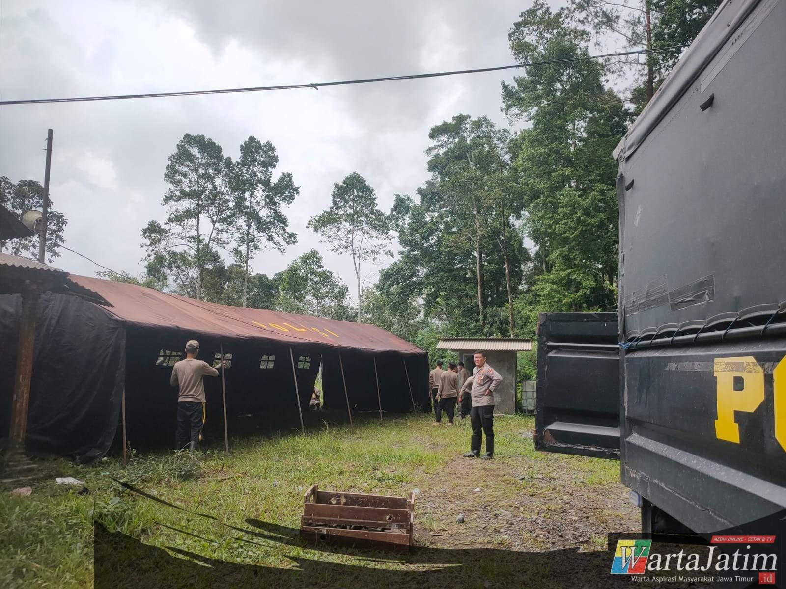 LUMAJANG — Wartajatim.id || Polres Lumajang Polda Jatim mendirikan tenda darurat dan Pos Tanggap Bencana di jalur Piket Nol, Desa Supit Urang, Kecamatan Pronojiwo, Kabupaten Lumajang.