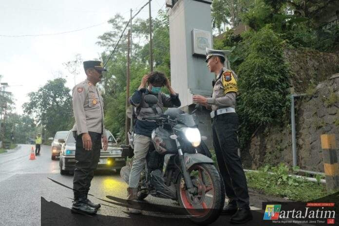 MALANG – Wartajatim.id || Satlantas Polres Malang Polda Jatim turut peduli pada keselamatan warga terdampak erupsi Gunung Semeru.