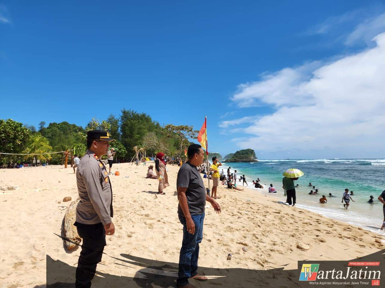 Selain pengamanan, petugas juga memberikan imbauan kepada wisatawan agar mematuhi rambu-rambu keselamatan, khususnya larangan berenang di area pantai yang dipasangi bendera merah.