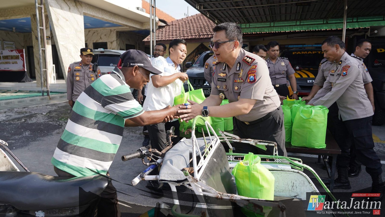 Dihadiri langsung oleh Kapolres Mojokerto Kota AKBP Herdiawan Arifianto didampingi Wakapolres Kompol Jalaludin, S.H., para Pejabat Utama (PJU), Sabuk Kamtibmas diikuti puluhan perwakilan masyarakat mulai dari ojek online, tukang parkir, tukang becak dan pedagang kaki lima.