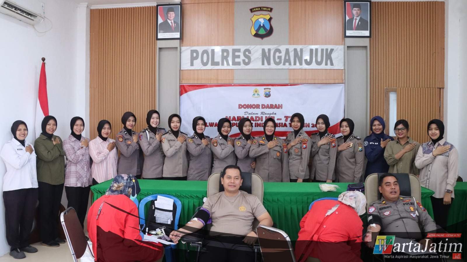 Nganjuk – Wartajatim.id || Menyambut peringatan Hari Jadi Polisi Wanita Republik Indonesia (Polwan RI) ke-77 yang jatuh pada 1 September 2025 mendatang, Polres Nganjuk menggelar kegiatan donor darah bekerja sama dengan PMI Kabupaten Nganjuk.