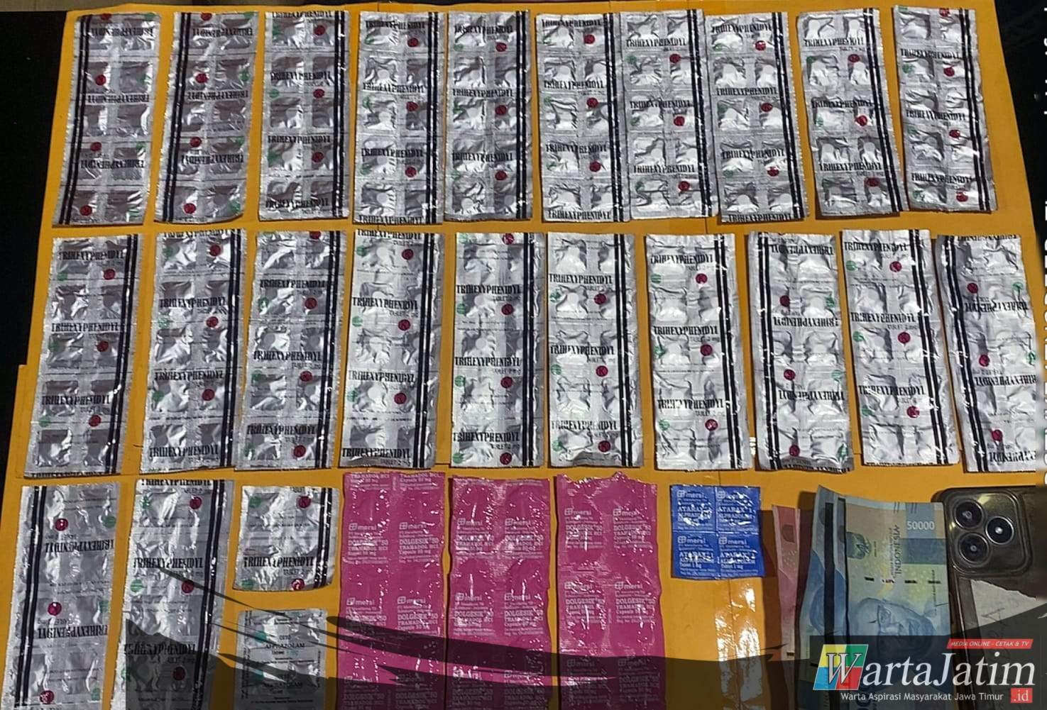 Dari tangan pelaku, petugas menyita ratusan butir obat keras berbahaya (Okerbaya)daftar G, di antaranya Trihexyphenidyl, Dolgesik, Alprazolam, dan Atarax.