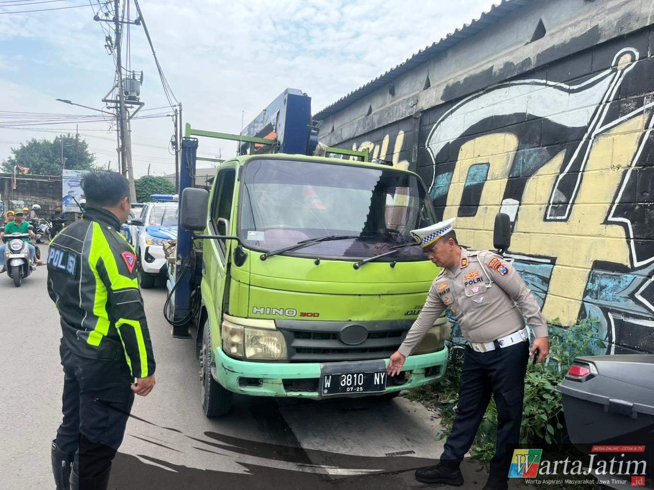Tak butuh waktu lama, Unit Turjawali dan Unit Urai Satlantas Polres Pelabuhan Tanjungperak mencurigai sebuah truk yang terparkir di pinggir jalan di wilayah Semampir.