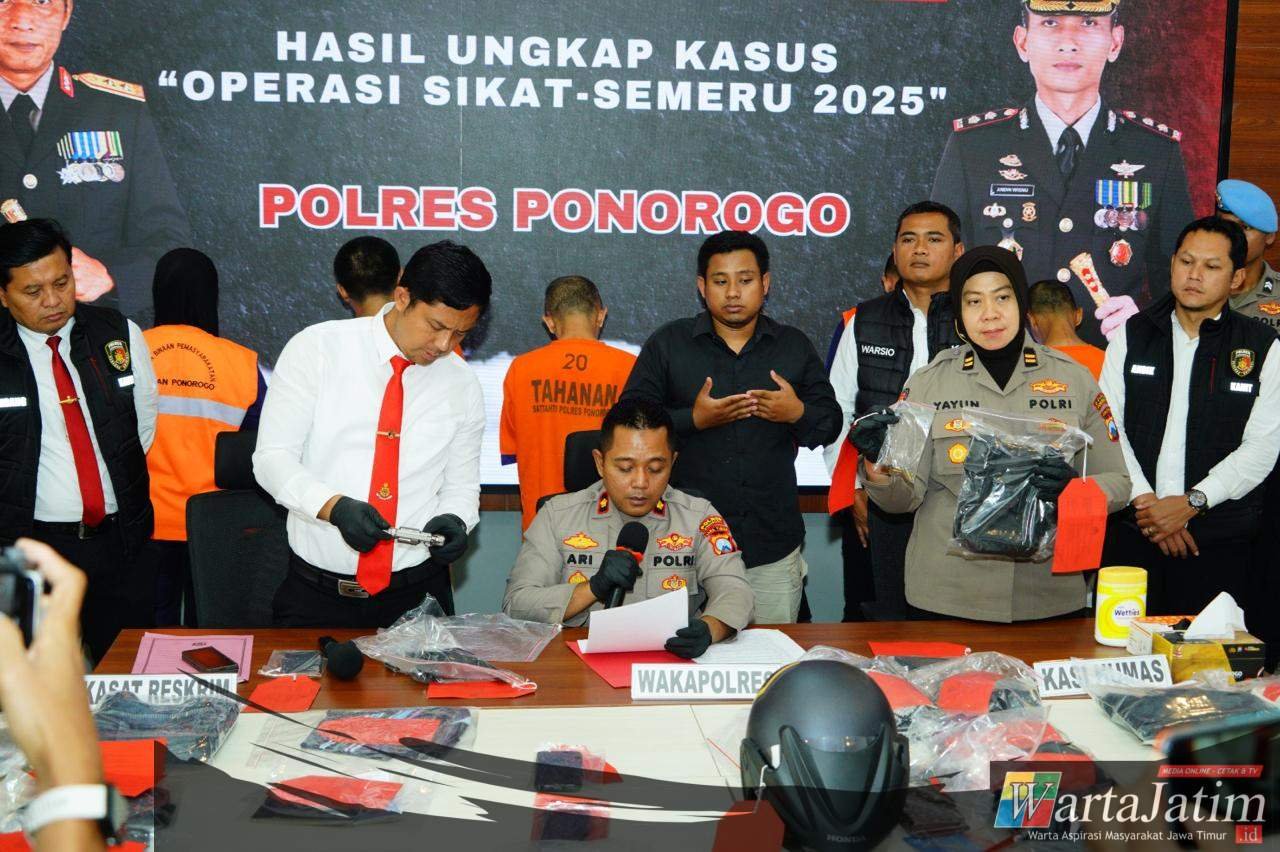 Wakapolres Ponorogo Kompol Ari Bayuaji dalam konferensi pers di Mapolres Ponorogo, Senin (10/11/2025), menjelaskan bahwa pengungkapan kasus ini berawal dari laporan masyarakat terkait adanya aktivitas jual beli senjata api.