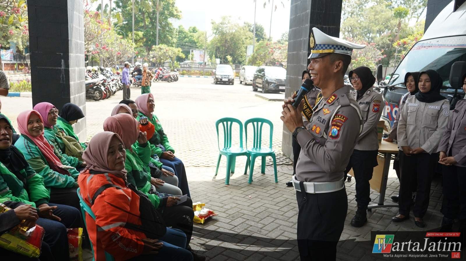 Pada momen tersebut, Kasat Lantas Polres Probolinggo Kota AKP Marjono memilih menanggalkan sekat birokrasi dengan menemui langsung para perempuan tangguh ini.