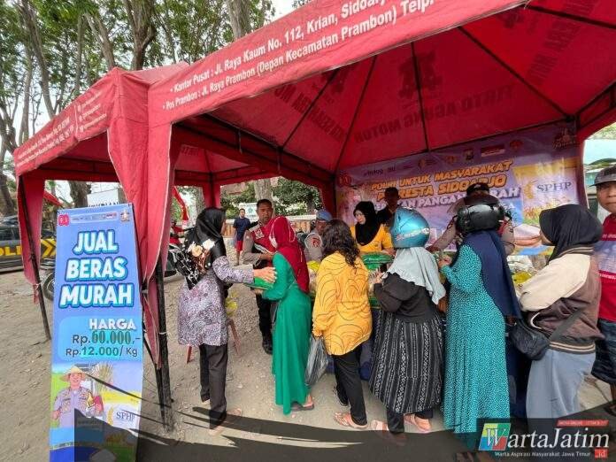 SIDOARJO – Wartajatim.id || Polresta Sidoarjo Polda Jatim bersama stake holder terkait,melaksanakan Gerakan Pangan Murah (GPM) menyeluruh di wilayah Kabupaten Sidoarjo.