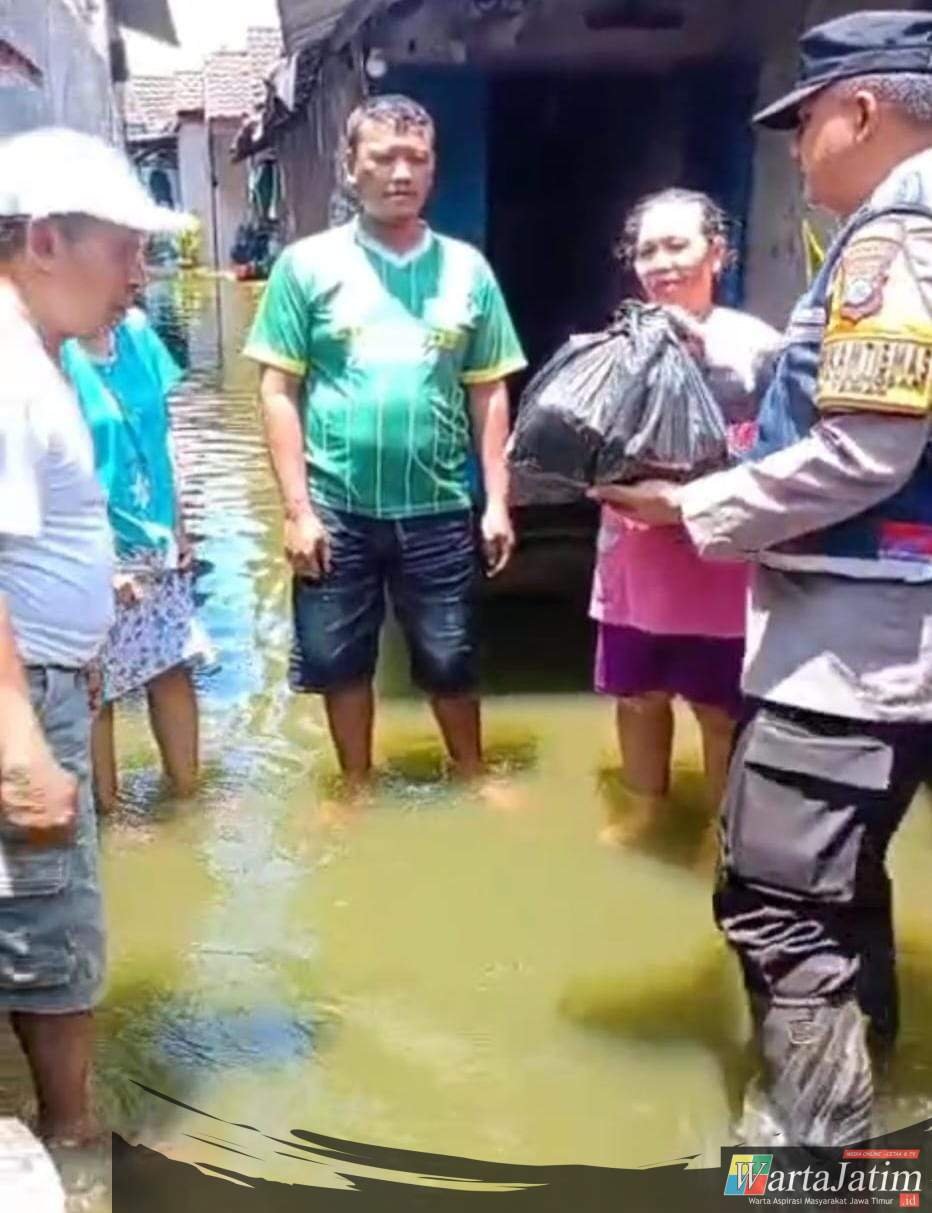 Polresta Sidoarjo Salurkan Bantuan Sembako Untuk Warga Terdampak Banjir di Dusun Dodokan