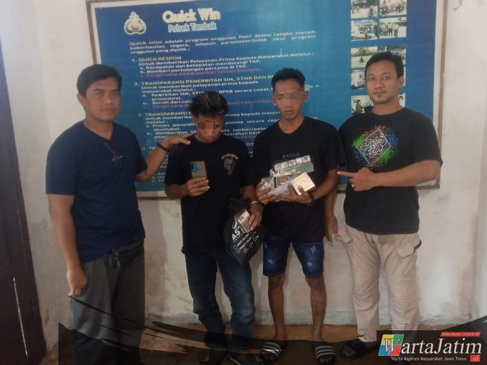 Kapolres Gresik AKBP Rovan Richard Mahenu melalui Kapolsek Tambak Iptu Mustofah, mengatakan, kedua pelaku masing-masing berinisial MR (22), warga Kecamatan Sangkapura, dan SB alias H (27), warga Desa Telukjati Dawang, Kecamatan Tambak.