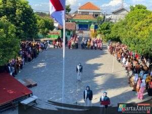 KEDIRI – Wartajatim.id || Peringatan hari Kartini pada setiap tanggal 21 April selalu menjadi momentum yang penuh semangat, sejuknya udara pagi menyapa siswa Sekolah Dasar Negeri (SDN) Sukorejo 1 kecamatan Ngasem Kabupaten Kediri Jatim, Hangatnya sinar matahari menghantar anak-anak melaksanakan upacara bendera memperingati Hari Kartini,pada Selasa (21/4/2026).