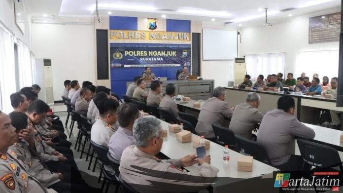 Nganjuk – Wartajatim.id || Polres Nganjuk menggelar Rapat Koordinasi (Rakor) Lintas Sektoral Operasi Lilin Semeru 2025 dalam rangka mewujudkan situasi kamtibmas dan kamseltibcarlantas yang kondusif pada perayaan Natal 2025 dan Tahun Baru 2026 di wilayah Kabupaten Nganjuk. Kegiatan berlangsung di Rupatama Polres Nganjuk dan dipimpin langsung Kapolres Nganjuk AKBP Henri Noveri Santoso, S.H., S.I.K., M.M., Kamis (18/12/2025).