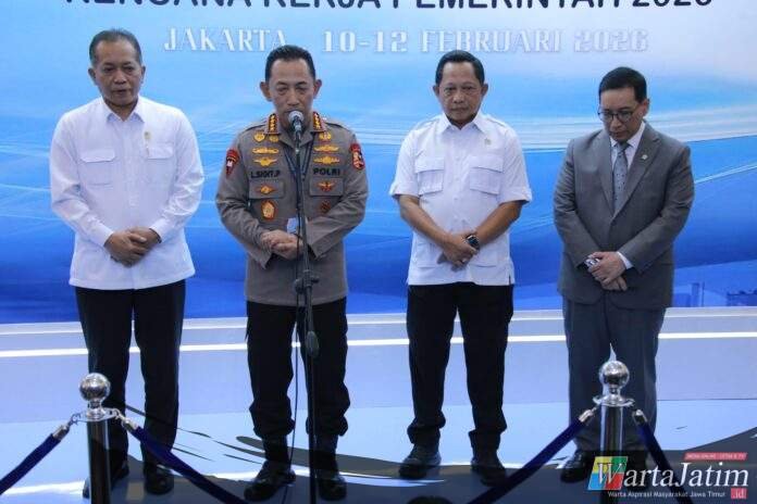 JAKARTA – Wartajatim.id || Kepolisian Negara Republik Indonesia (Polri) menegaskan komitmennya untuk mengawal dan mendukung penuh program kerja pemerintah pada tahun 2026. Hal tersebut disampaikan Kapolri Jenderal Polisi Drs. Listyo Sigit Prabowo, M.Si., dalam kegiatan doorstop usai Rapat Pimpinan (Rapim) Polri 2026 di The Krakatau Grand Ballroom, Rabu (11/2/2026).
