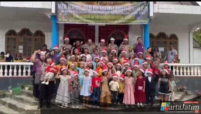 Tapanuli Utara — Wartajatim.id || Kepolisian Negara Republik Indonesia (Polri) menggelar kegiatan Natal Bersama Polri dan Keluarga Korban Bencana Alam di wilayah Kabupaten Tapanuli Utara sebagai wujud kepedulian dan empati kepada masyarakat yang terdampak bencana tanah longsor. Kegiatan tersebut dilaksanakan di Gereja HKBP Lobu Pining dan Gereja HKBP Sibalanga, serta dihadiri oleh jajaran pejabat kepolisian dan masyarakat setempat.