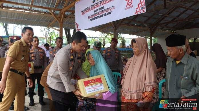 Nganjuk – Wartajatim.id || Dalam rangka memperingati HUT Reserse Polri ke-78 Tahun 2025, Polres Nganjuk menggelar kegiatan bakti sosial (Bansos) dan bakti kesehatan (Bakkes) dengan tema “Reserse Presisi Siap Melayani” di kawasan Wisata Lumban Pinggir Kali, Desa Kweden, Kecamatan Ngetos, Senin (8/12/2025).