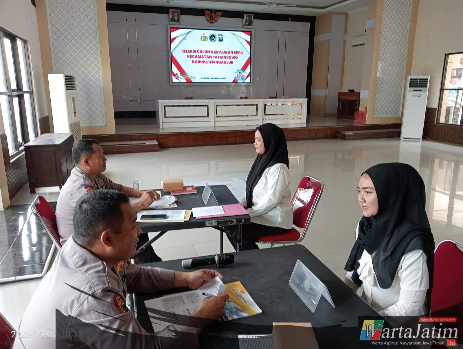 Nganjuk – Wartajatim.id || Polres Nganjuk melalui Seksi Kedokteran dan Kesehatan (Sidokkes) menggelar pemeriksaan kesehatan (rikkes) dan tes psikologi bagi calon pegawai Sentra Pelayanan Pangan Gizi (SPPG) Kecamatan Patianrowo. Kegiatan berlangsung di Aula Polres Nganjuk, Rabu (12/11/2025).