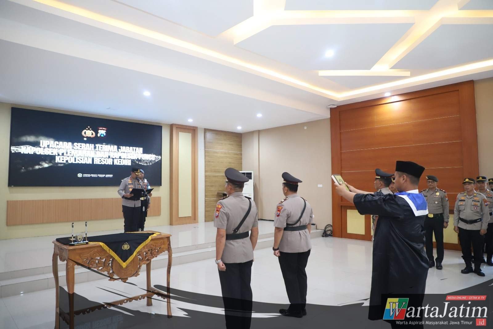 KEDIRI- Wartajatim.id || Polres Kediri menggelar Upacara Serah Terima Jabatan (Sertijab) dua Perwira yang menjabat sebagai Kapolsek.
